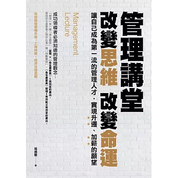 《道德經》、《易經》二書是中國千古不朽的哲學寶典,深奧的抽象思考及所蘊藏的辯證思維,建構了中國人思維的核心價值,其間融合的人文思想及自然萬象一切範疇,正是中國思想史最精髓的根基。《管理講堂》便是以道德經、易經二書為思想理念,透過專業的管理角度闡述古籍中的篇章,逐一將管理應用的定律與思維,以故事的手法集結成冊。「管理講堂---改變思維、改變觀念」分四大篇;第一篇老子的管理智慧;第二篇為易經管理智慧;第三篇為管理定律;第四篇為管理新思維。