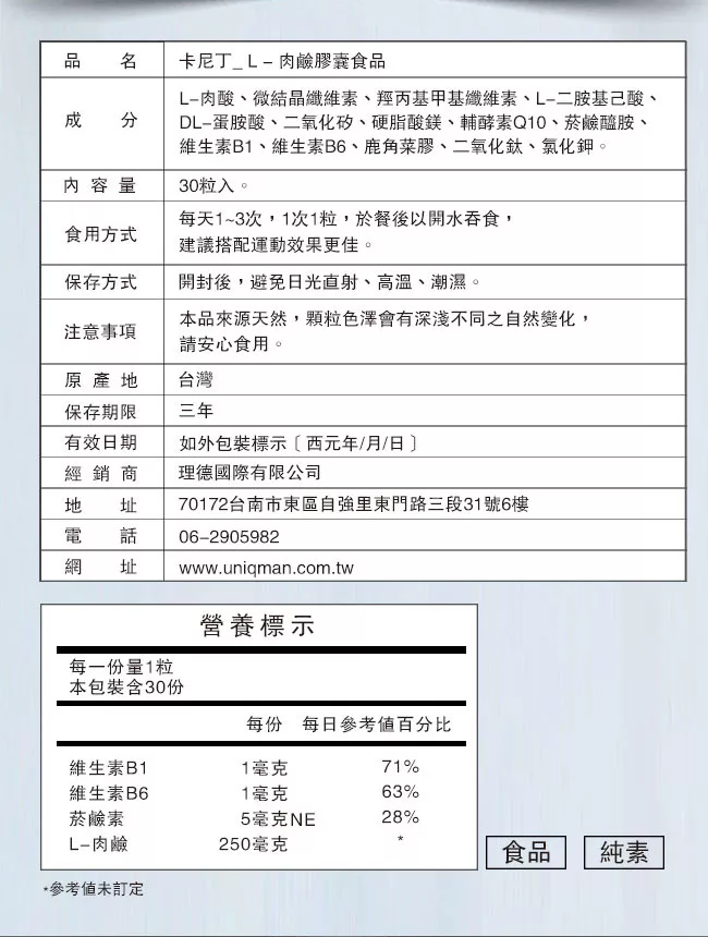 UNIQMAN-卡尼丁_L-肉鹼二代(3袋組)(30顆-袋) 評價